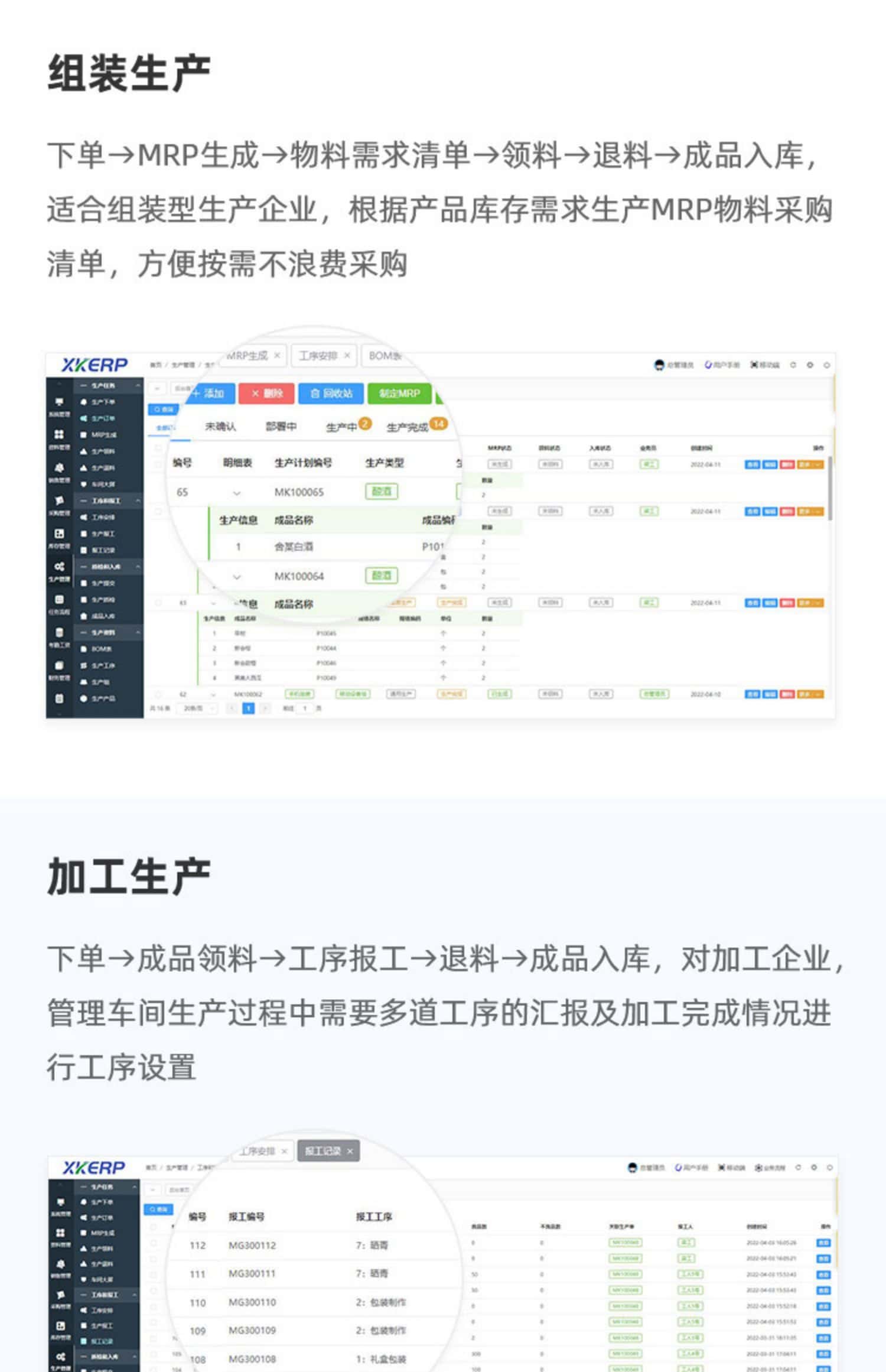 XK-ERP生产管理系统,能够帮助企业建立一个规范准确即时的生产数据库,同时实现轻松、规范、细致的生产业务库存业务一体化管理工作。提高管理效率、掌握及时、准确全面的生产动态,有效控制生产过程。适用于所有从事产品制造及有库存管理的企业。