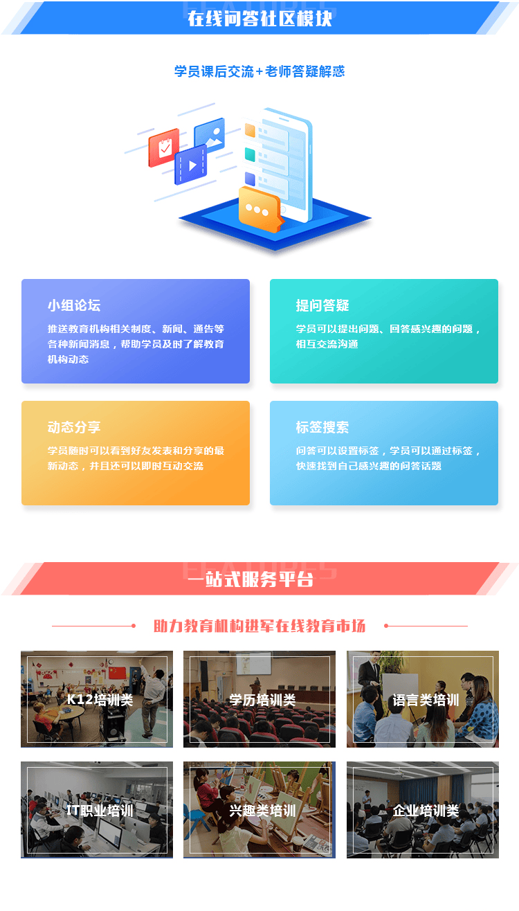 推送教育机构相关制度、新闻、通告等各种新闻消息,帮助学员及时了解教育机构动态